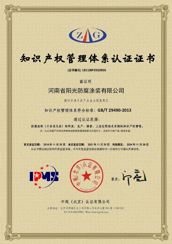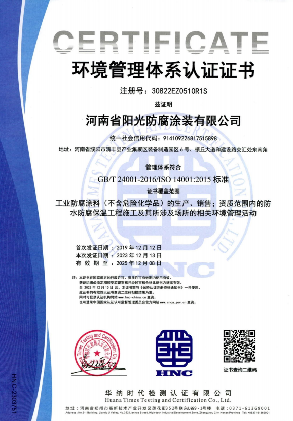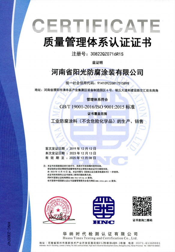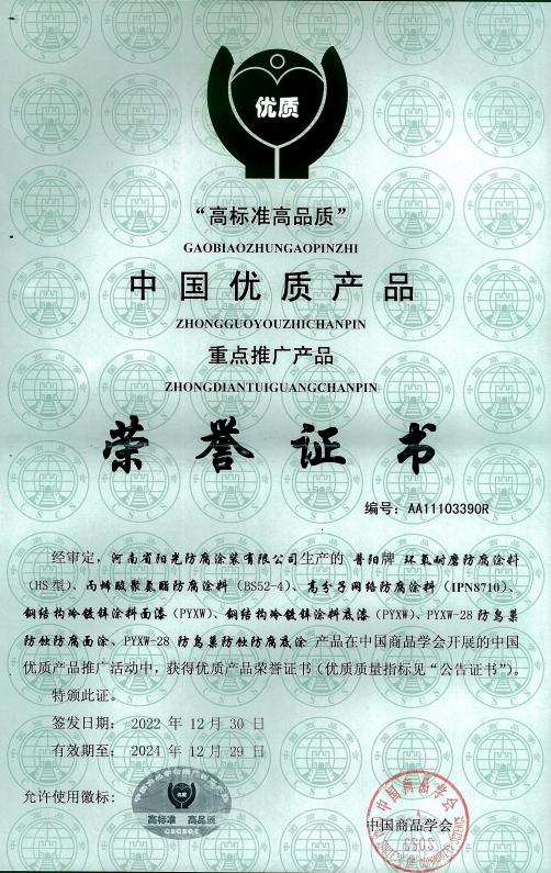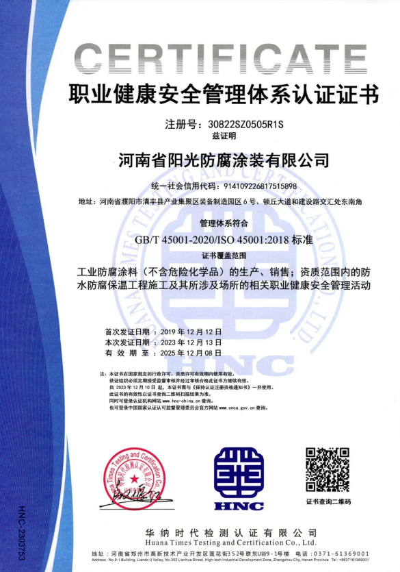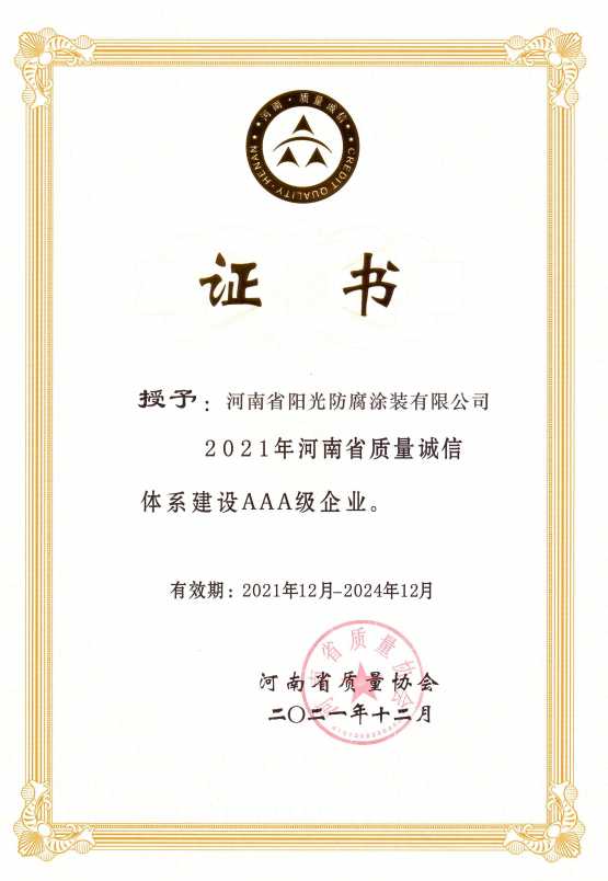 河南省陽光防腐涂裝有限公司為中石油涂料生產定點廠,中海油三新協作中心成員單位,中國腐蝕與防腐學會會員單位